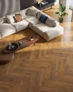 Ламинат Icon Floor Natural 34 класса износостойкости, выполнен под паркет, для укладки английской или венгерской елкой, планки имеют тисненную поверхность, полностью повторяющую рисунок древесины и фаску по периметру. Походит для использования с теплыми полами. Размер планки: 600*100*12 мм.