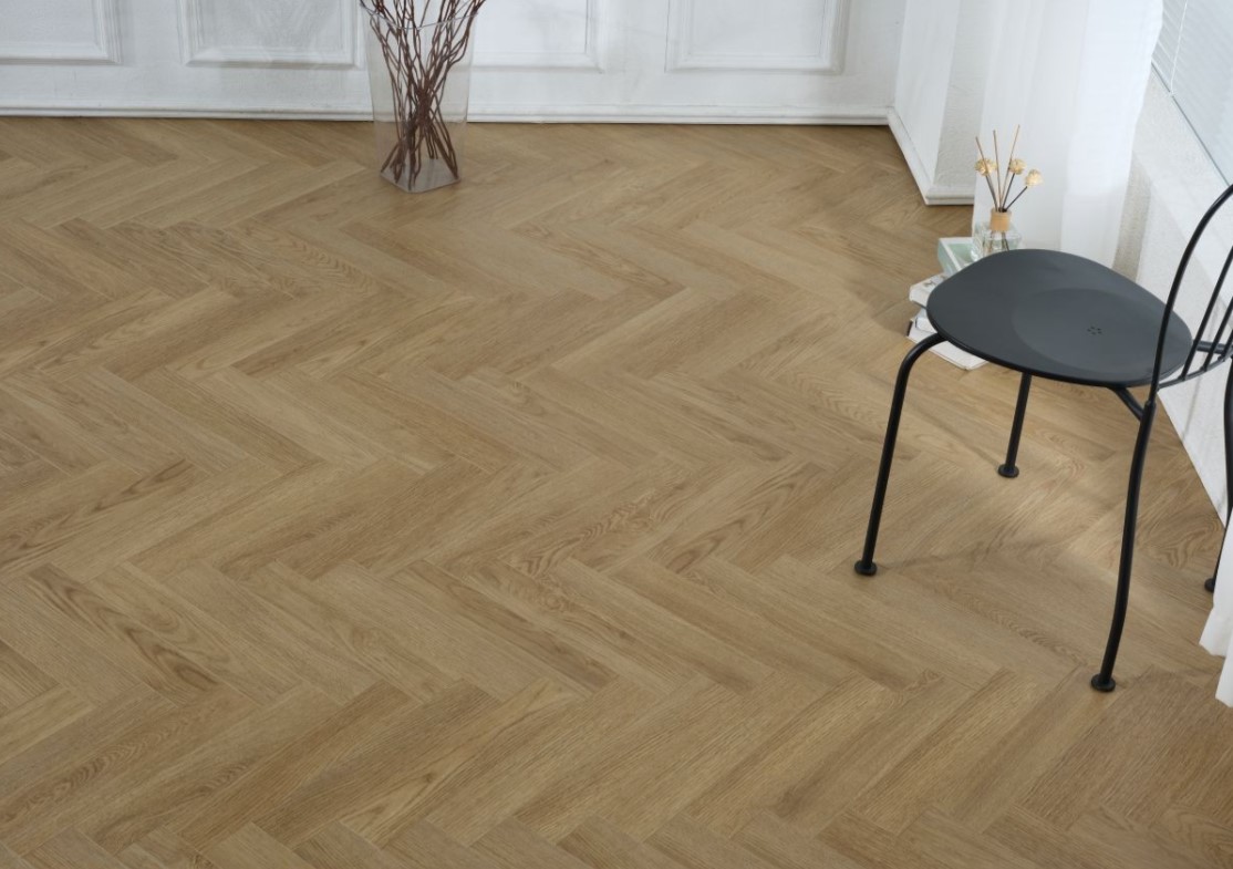 Ламинат Lamiwood Shelby 34 класса износостойкости, для укладки в виде паркета английская елочка, с фаской по периметру планки и тисненой поверхностью EIR. Замковое соединение single-click с восковой пропиткой Aqua Protect. Размер: 400*80*12 мм.