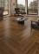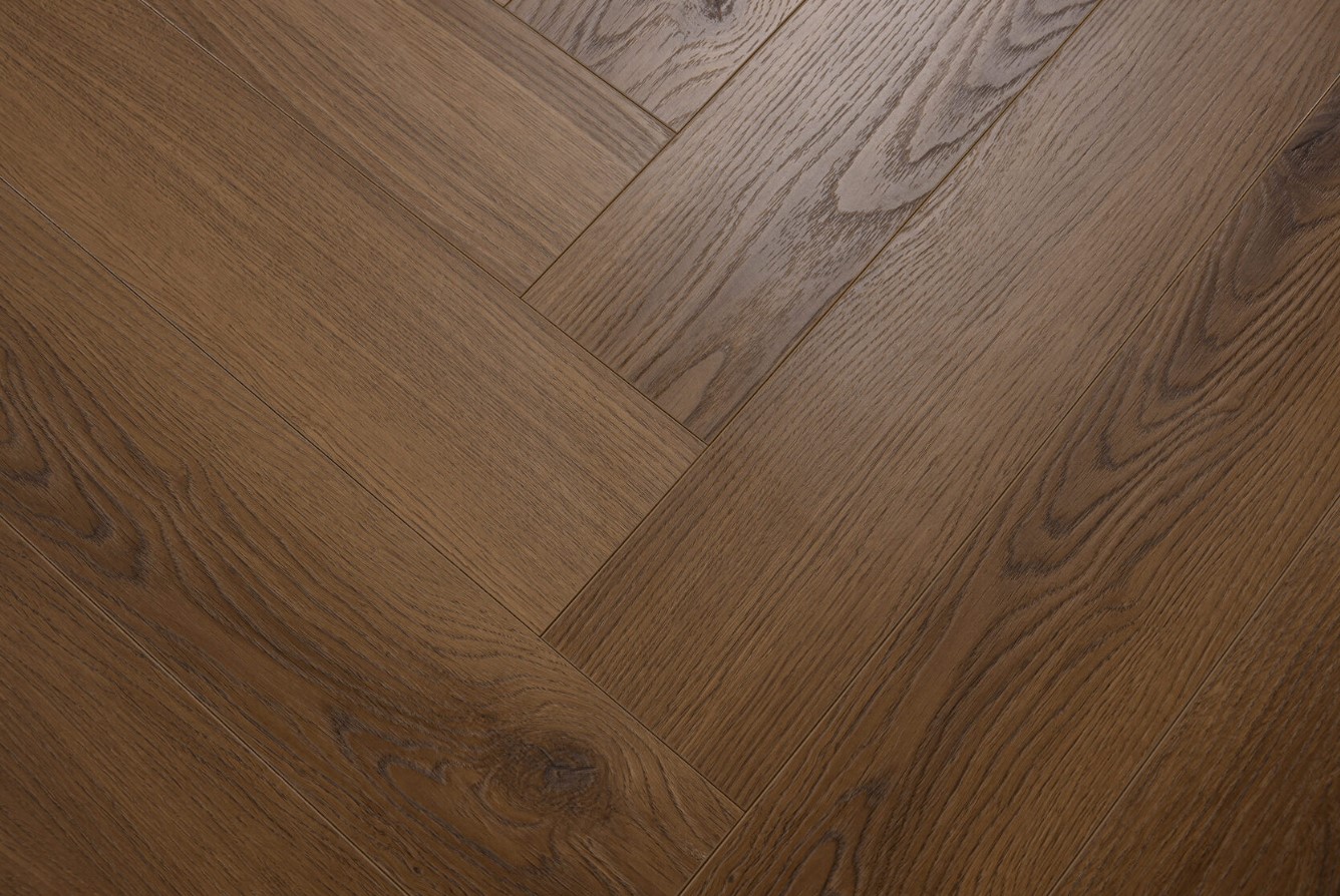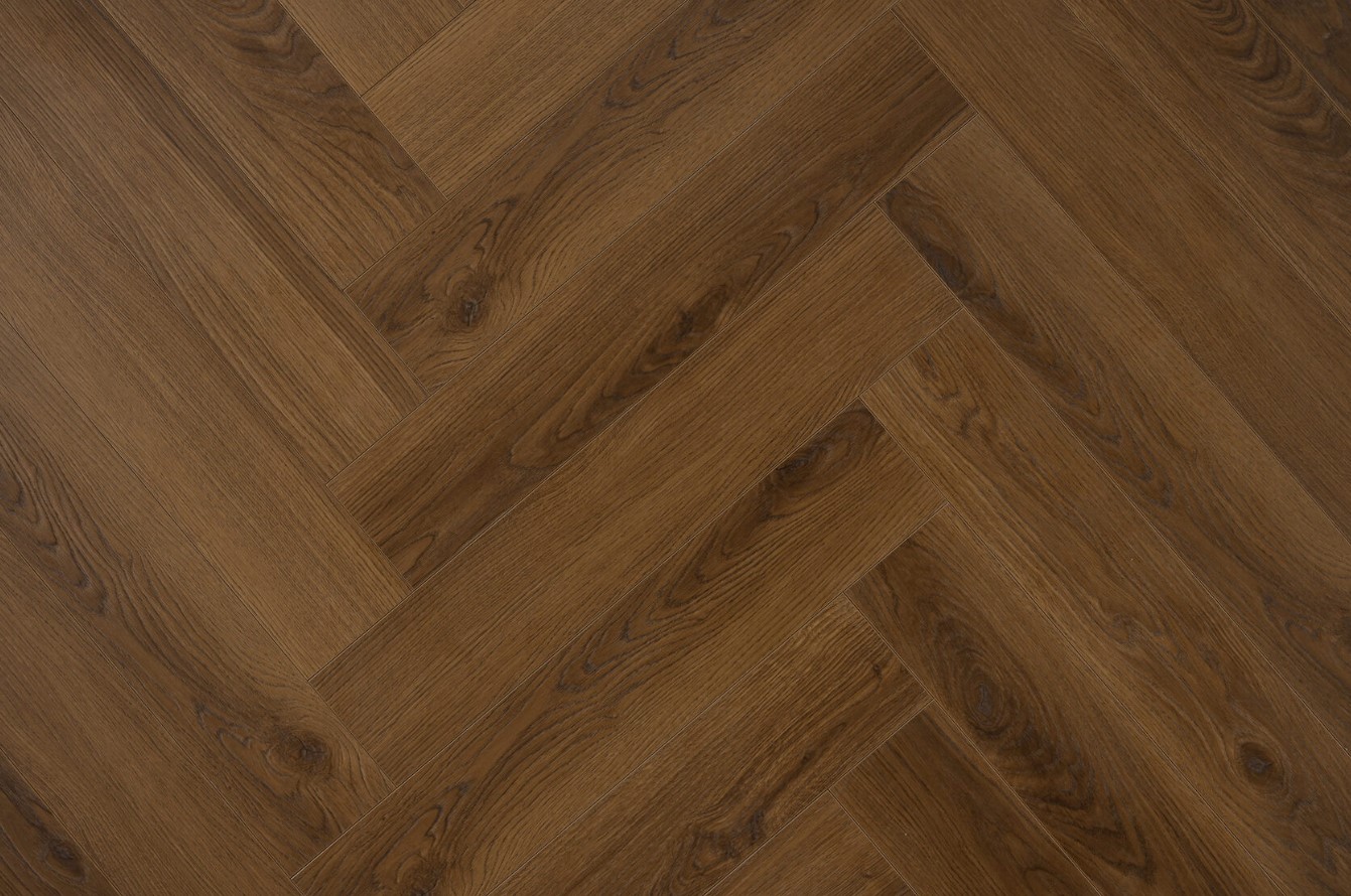 Ламинат Most Flooring Аккорд 33 класса износостойкости, стилизован под паркет английская елочка, с фаской по периметру планки и матовой тисненной поверхностью. Подходит для теплого пола. Размер: 600*112*8 мм.