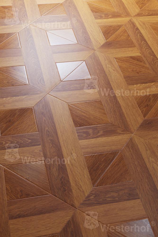 Ламинат 33 класса Westerhof Maestro Aristocrat - роскошное напольное покрытие, имитирующее деревянный наборный паркет. Широкий формат панелей уменьшает количество стыков. Размер: 1200х400х12 мм.