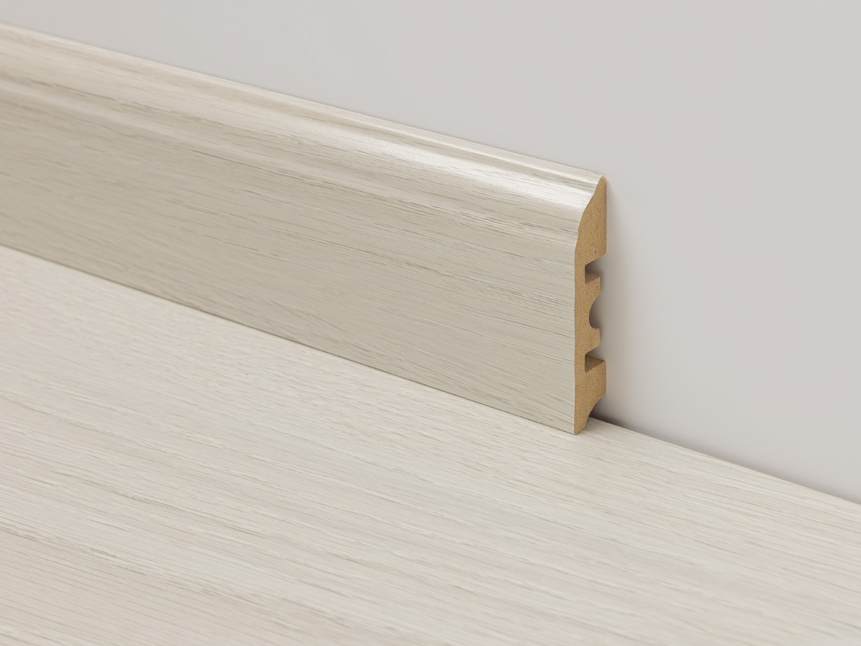 Плинтус прямой МДФ ламинированный с кабель-каналом, для ламината FloorWay. Размер плинтуса: 2400*58*15.