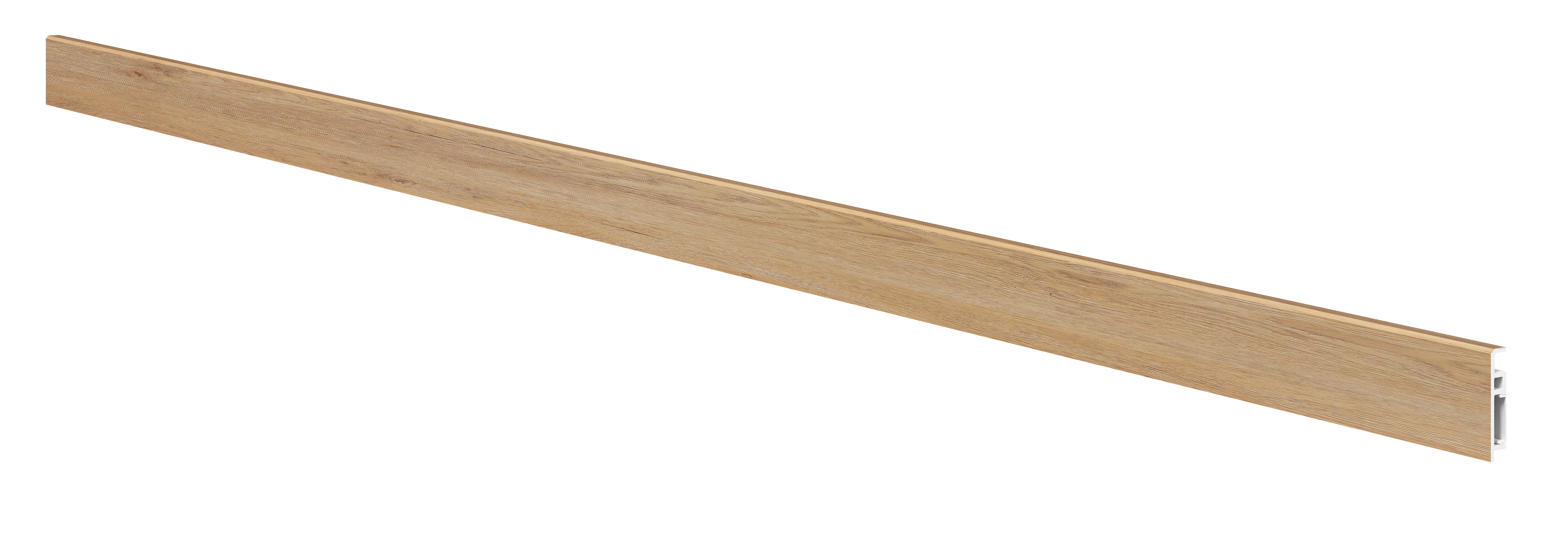 Напольный плинтус Foresta из вспененного ПВХ, имитирующим поверхность древесины, со скрытым кабель-каналом. Имеет защиный слой толщиной 0,1 мм. Размер: 2000*70*13 мм.