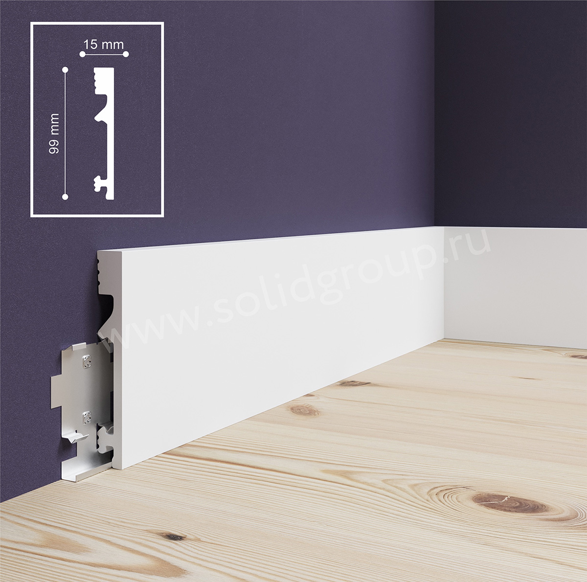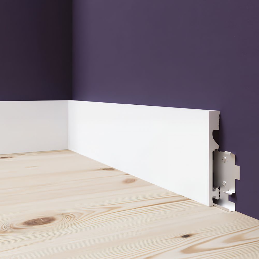 Напольный плинтус Солид 1 UHD 28/100C под покраску, из долговечного и прочного полимера высокой плотности, устойчивого к появлению царапин и не деформирующегося под воздействием влаги. Размер: 2000*15*100 мм.
