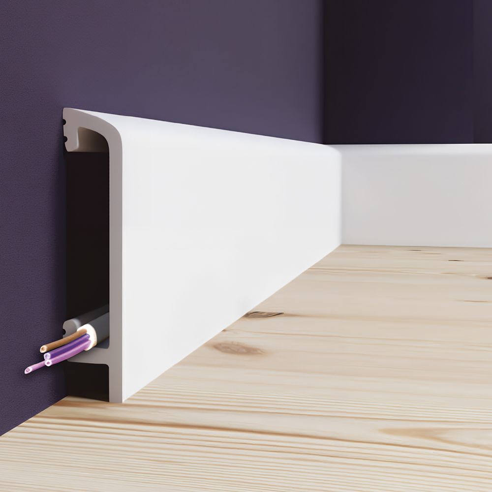 Напольный плинтус Солид UHD 45/90 под покраску, из долговечного и прочного полимера высокой плотности, устойчивого к появлению царапин и не деформирующегося под воздействием влаги. Размер: 2000*20*90 мм.