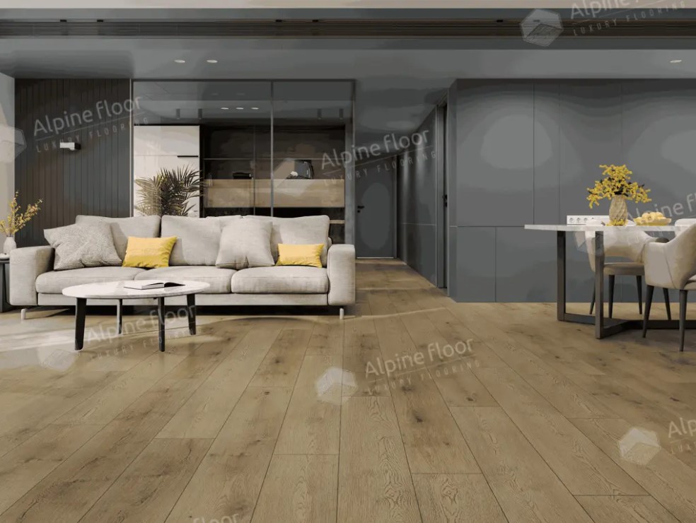Замковая каменно-инженерная плитка Alpine Floor Premium 12, 43 класса износостойкости, на основе высокопрочного и устойчивого композита WPC, этот материал обеспечит максимальную долговечность и надежность покрытия, оно идеально подойдет для помещений с высокой проходимостью и общественных помещений, чему способствует класс пожарной безопасности KM2. Классический дизайн, под дерево с четырехсторонней фаской, благодаря применению технологии синхротиснения, достоверно имитирует оригинал, как по внешнему виду, так и по тактильным ощущениям. Размер планки: 1524*228*12 мм. Плитка снабжена встроенной подложкой, имеющей высокие звуко и шумопоглащающие свойства.