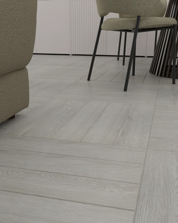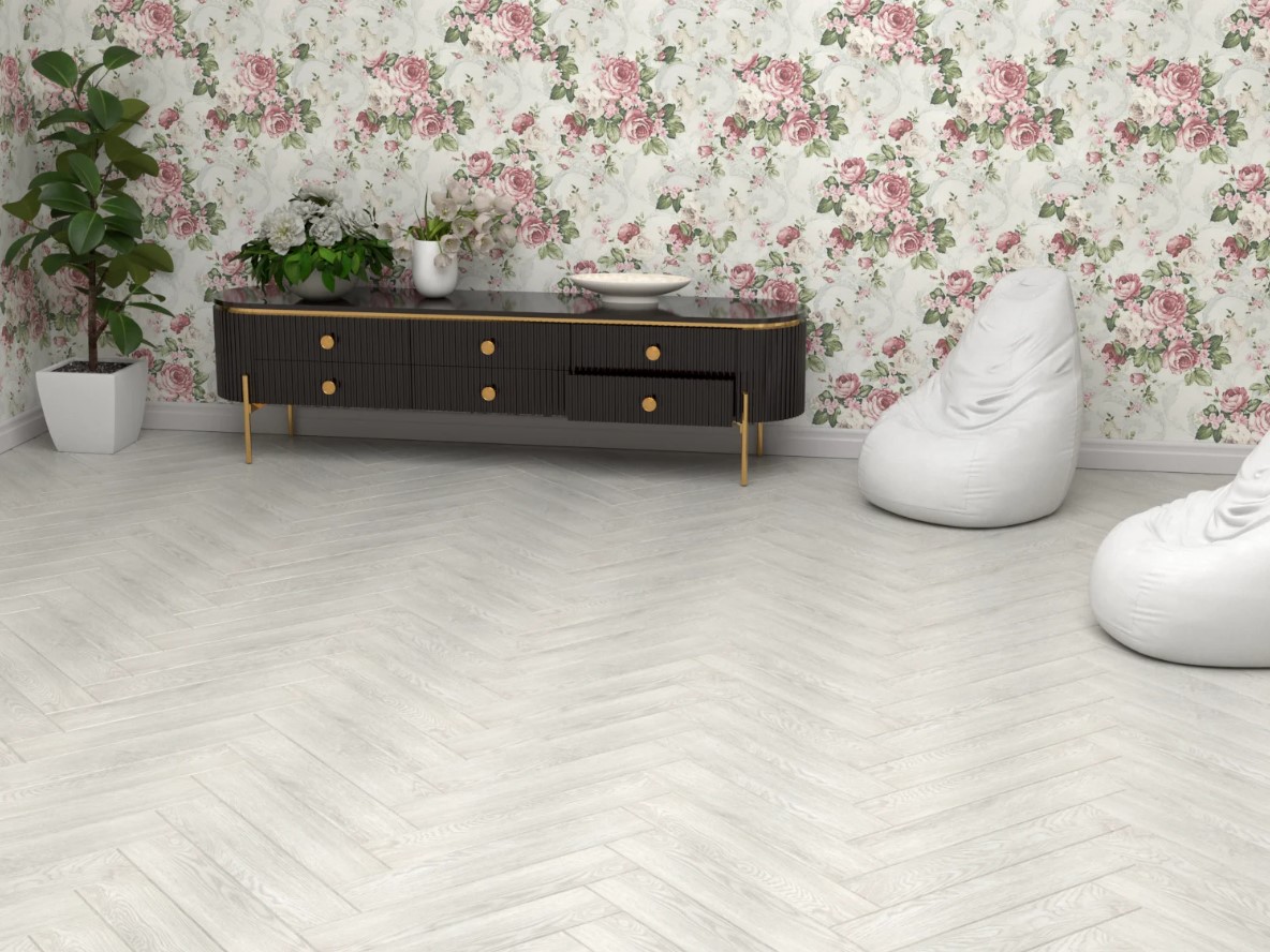 Замковый ламинат Novafloor Chateau под паркет елочку с фаской по периметру плашки и синхронным тиснением поверхности. 43 класс износостойкости и защитный слой толщиной 0.5 мм позволяют применять покрытие в бытовых и коммерческих помещениях. Размер: 640*128*4.5 мм.