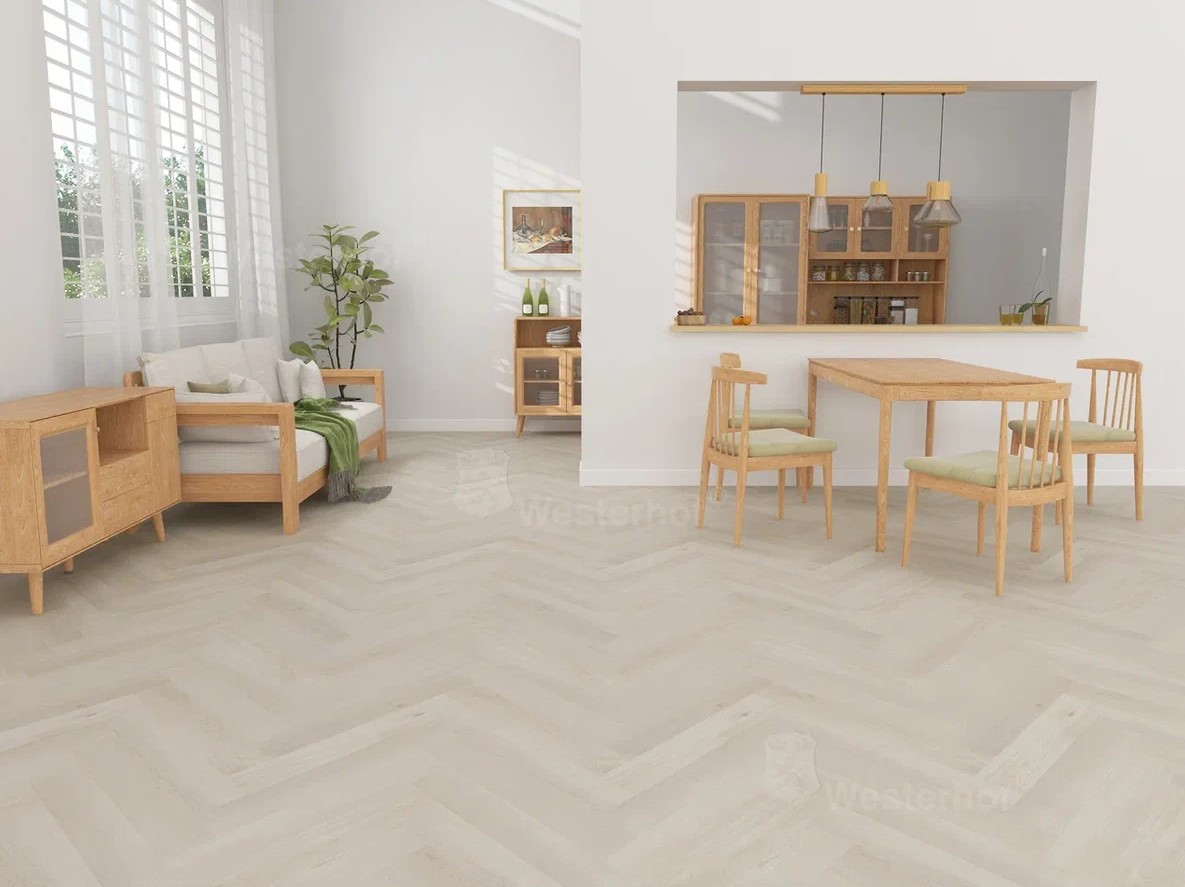 Ламинат SPC Westerhof Vivace - 100% водонепроницаемое напольное покрытие. Совместимо с теплыми полами любого вида: кабельными, электрическими, инфракрасными. Долговечное покрытие устойчиво к воздействию УФ-лучей, механическим повреждениям и образованию царапин. Покрытие можно укладывать ёлочкой. Левый и правый замок: система замков А и В. Размер: 625*125*4 мм.