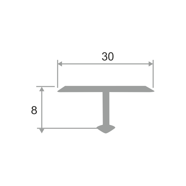 Профиль алюминиевый Т-образный ПТ-30 с ламинированным декоративным покрытием, используется для соединения напольных покрытий, скрывает швы шириной до 28 мм, обладает эстетичным внешним видом, скрывает недостатки и дефекты шва.
